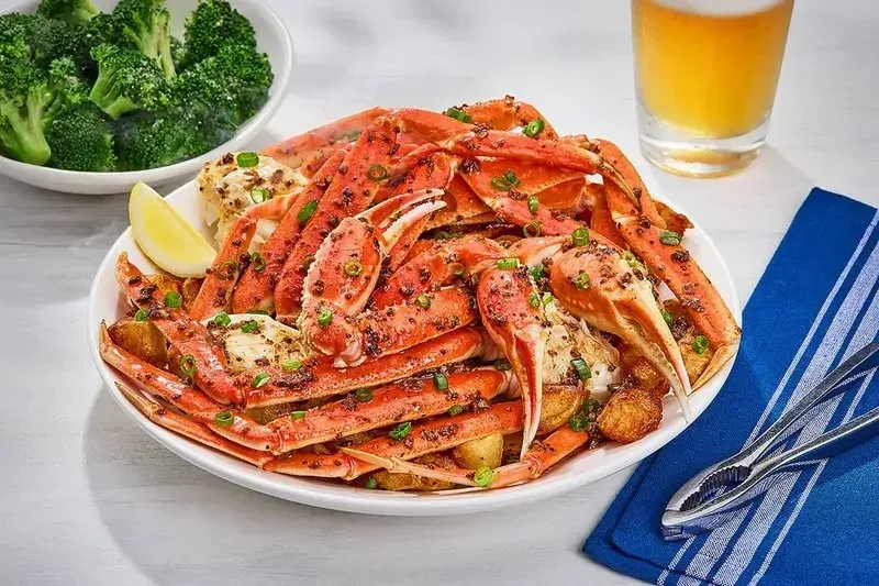 Crab Your Way: You can savor a whole pound of wild-caught snow crab legs, steamed to perfection. Choose from flavorful options such as Roasted Garlic Butter, Cajun Butter, or simply steamed. Served over golden potatoes with a side of your choice, this is a real crowd-pleaser.