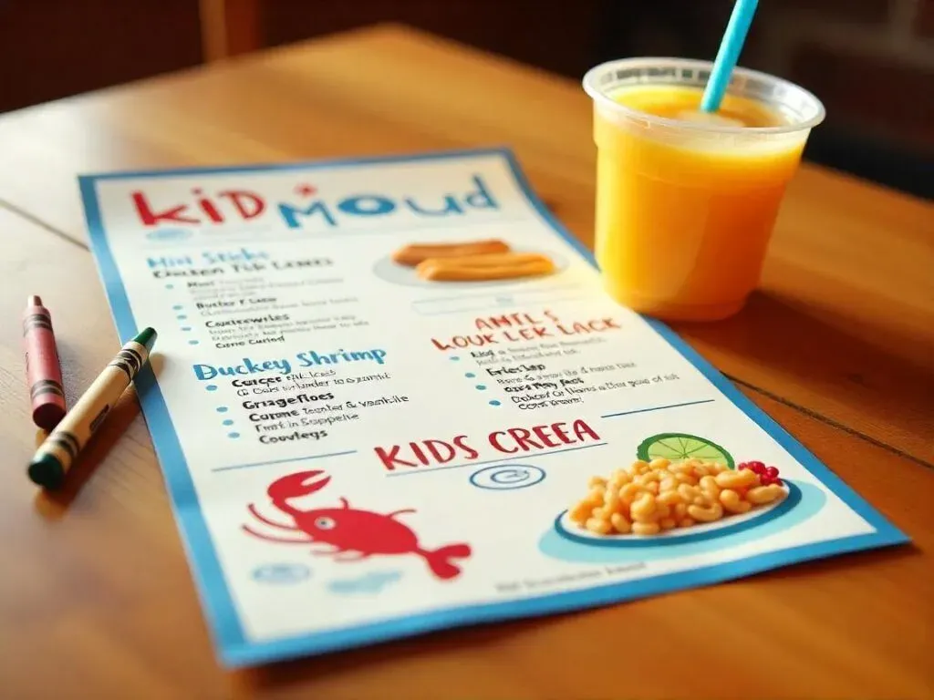The Kids Menu features favorites like Garlic-Grilled Shrimp, Popcorn Shrimp, Macaroni & Cheese, Chicken Tenders, and Golden-Fried Fish.